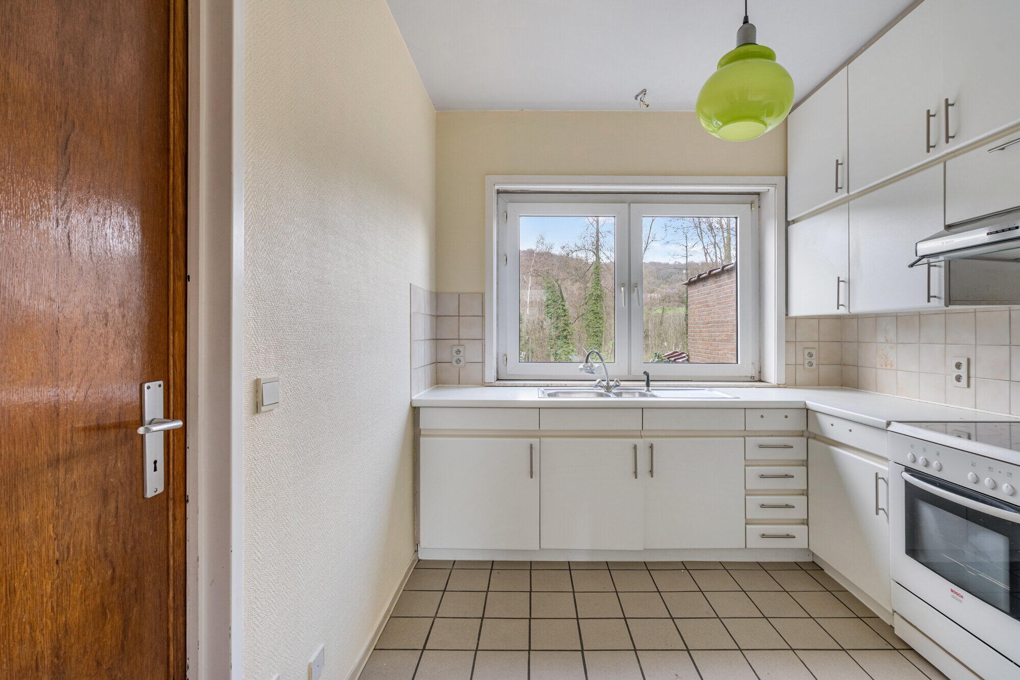 - Keuken met keramisch vuur, Bosch oven, dampkap, dubbele RVS spoelbak met afdruip;