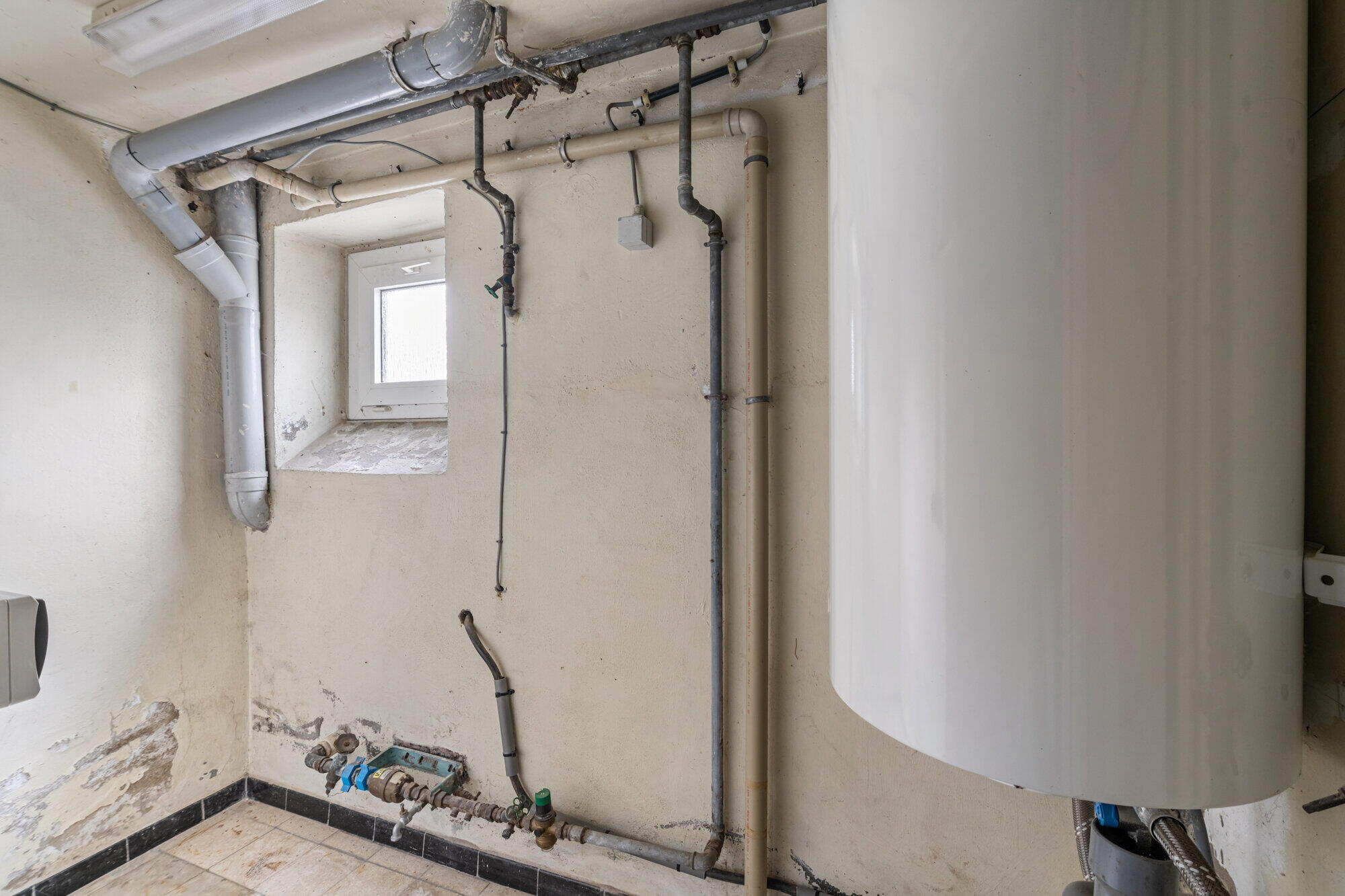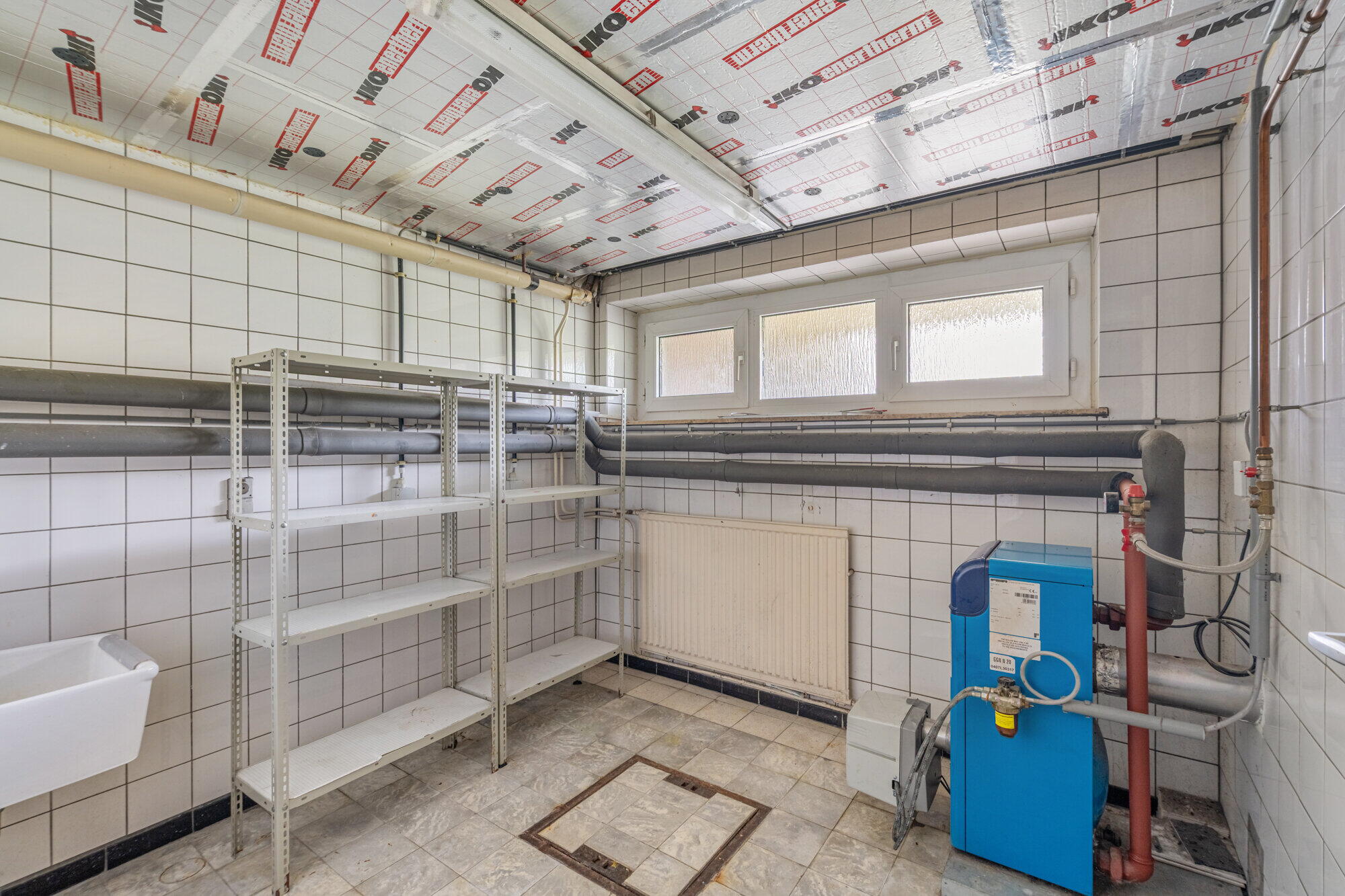 - Kamer met uitgietbak, mazoutketel en ramen voor extra daglicht.